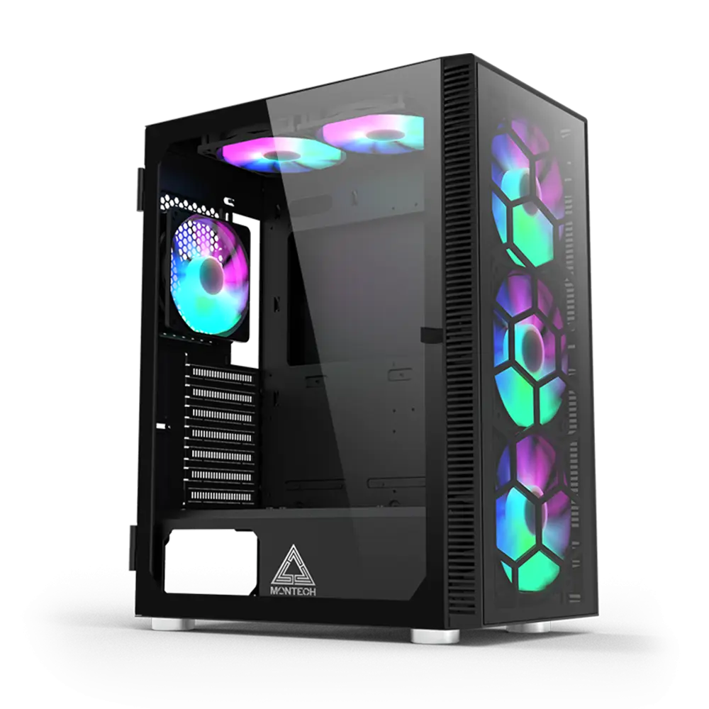 Dive into our gallery showcasing stunning visuals of the Montech X3 Glass RGB Black Gaming Case in action, highlighting its aesthetic appeal and functionality.