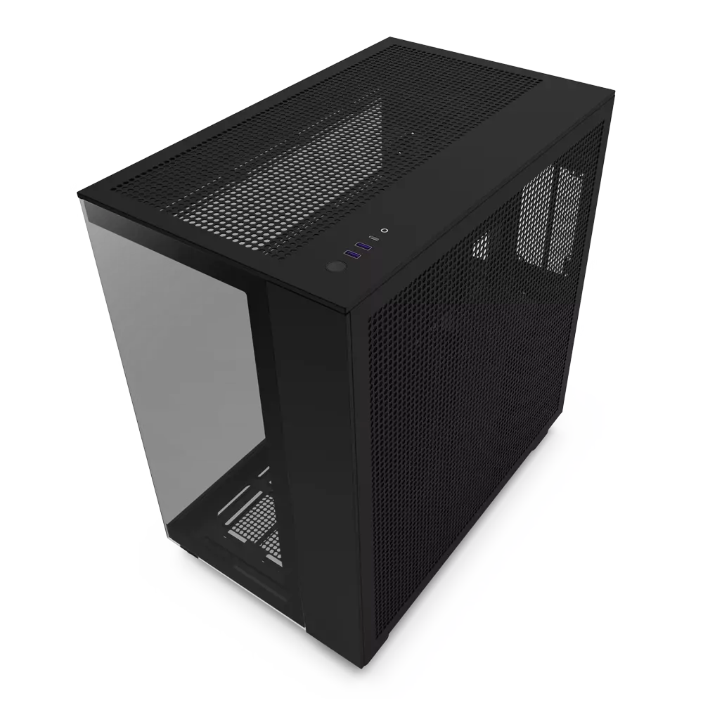 The NZXT H9 Flow Edition Black ATX Mid Tower Case in Saudi offers key features such as room for up to ten fans or three 360mm radiators, a dual-chamber design, and a unique wraparound glass panel for a premium showcase.