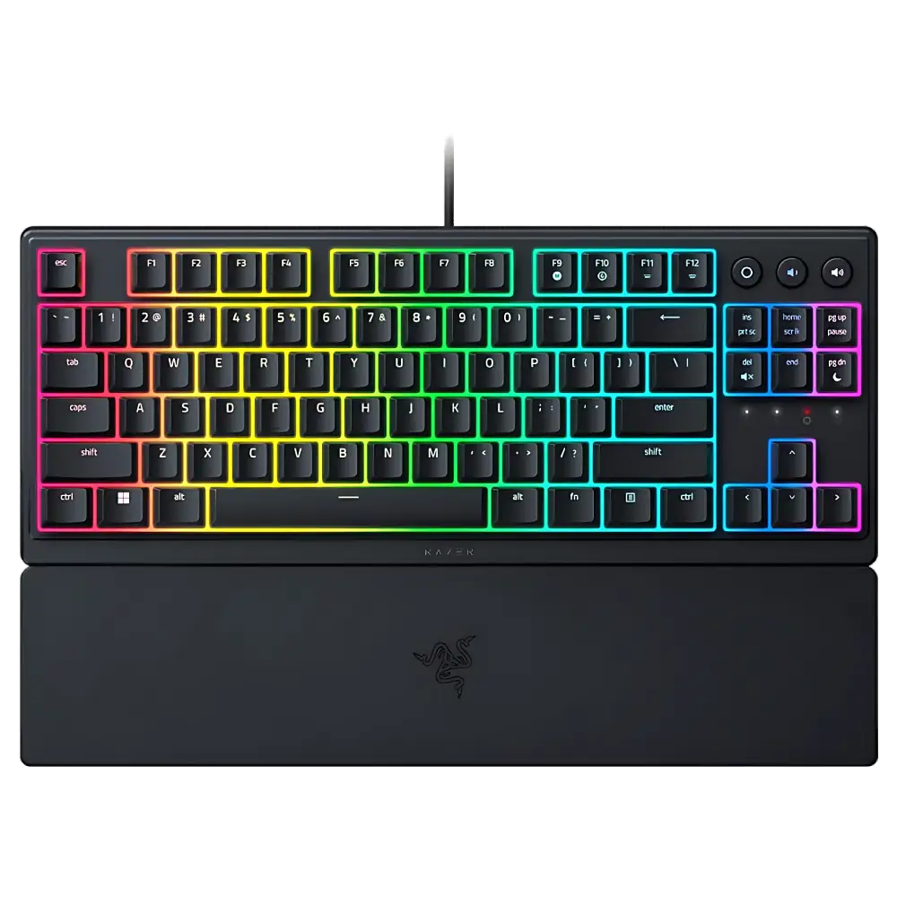 The Razer Ornata V3 Tenkeyless Gaming Keyboard has arrived in Saudi. A innovative low-profile ergonomic solution. With smaller keycaps and mecha-membrane switches, it delivers a pleasing, clicky keystroke with a soft, cushioned touch. The UV-coated keycaps provide increased fade and scratch resistance, increasing longevity. Enjoy the convenience of illuminated dedicated media keys and a magnetic soft-touch wrist rest for longer gaming support. Enhance your office with 10 customisable Razer ChromaTM RGB lighting zones. Experience the best of both worlds in a sleek, compact design built for greater comfort and efficiency in Saudi.
