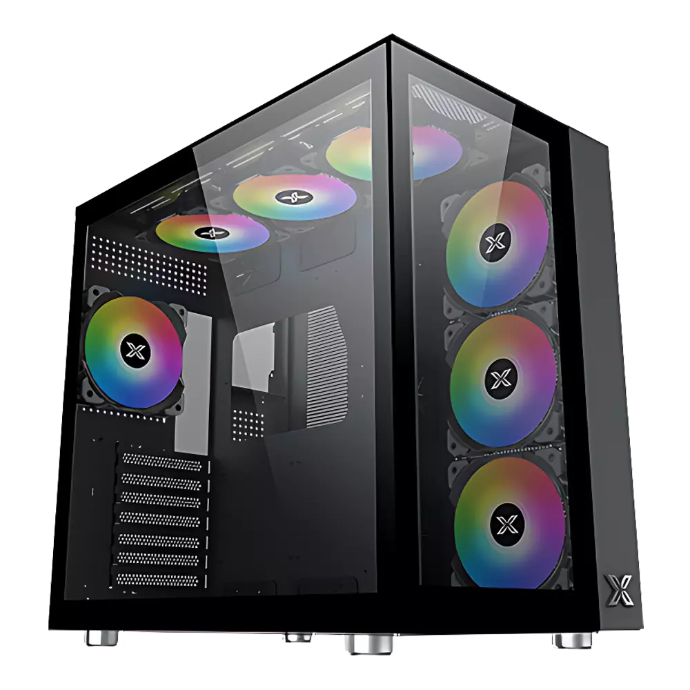 The Xigmatek Aquarius Pro wide-body introduces a fresh Rainbow RGB PC case design, featuring tempered glass on the front and left sides to accommodate significant ATX, M-ATX, and Mini ITX gaming or professional motherboards. Its innovative chassis design ensures effortless cord management and conceals all cables for a clean appearance. With a see-through tempered glass front panel, the Aquarius is perfect for showcasing your system's construction.